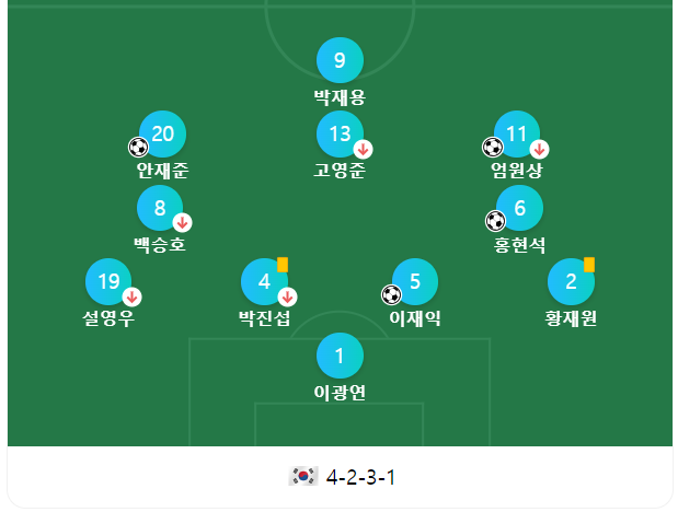 대한민국은 태국전에서 4231 포메이션으로 나왔다.